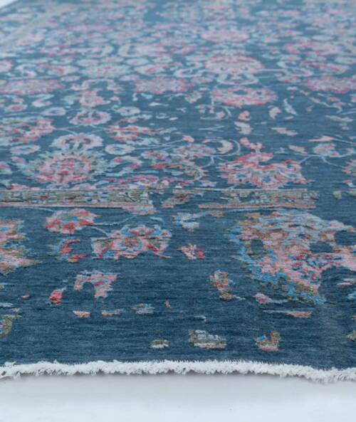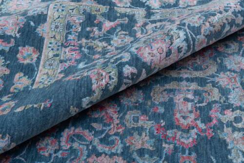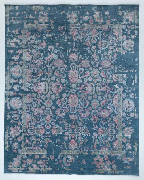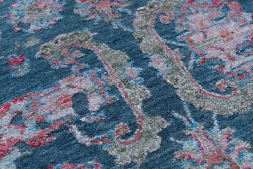 A stunning erase design in this hand-woven beauty. With a petrol blue background and a viscous design