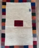 The Luri and Qashqa’i nomads who migrate over vast territories in Southern and Western Iran have long been famous for their carpets, made from the wool of their own sheep which they have carded and spun themselves. They are woven by the women of the tribes, on primitive portable looms which are stretched out on the ground. Apart from the fine more formal carpets for which the tribes are famous, they also weave another type of rug which are much more creative in design. These are the Gabbehs. This particular piece mixes the checker board design with a plain open field using undyed wool. Giving a totally unique rug