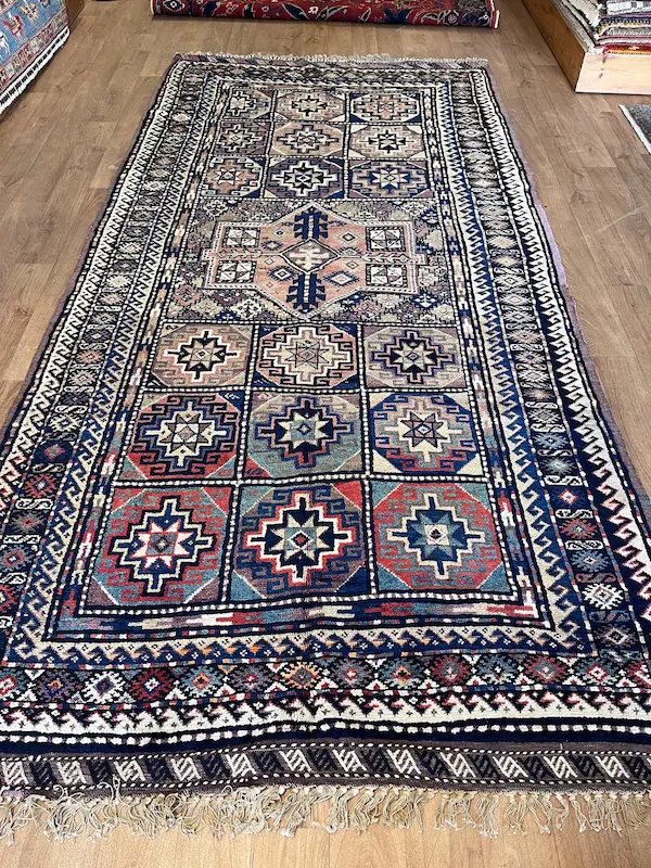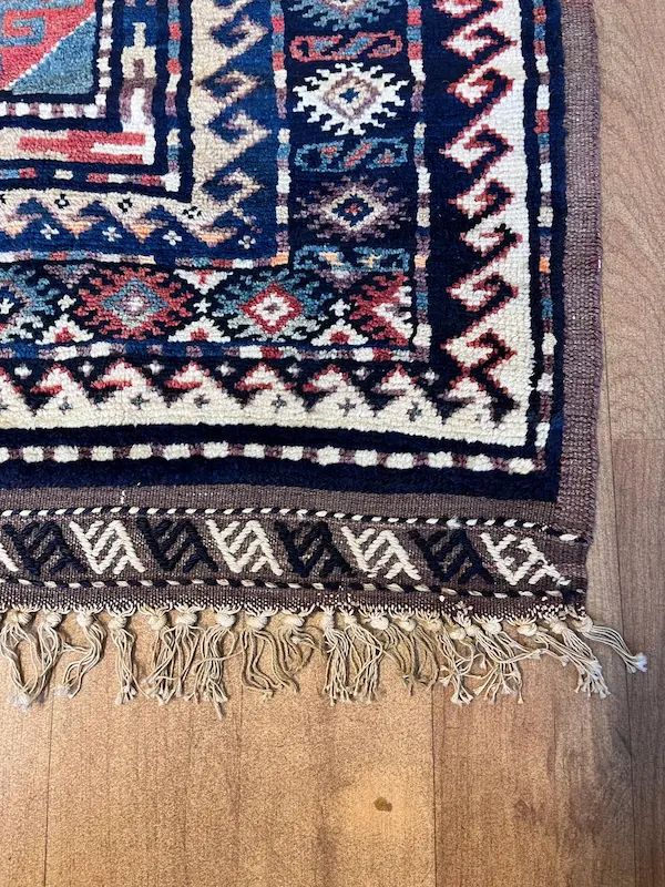 This beautiful vintage Kurdish rug is a wonderful example of tribal/village weaving. Woven in the NE of Persia around 40/50 years ago in this traditional size – long and narrow. Giving a piece which is completely authentic and unique
