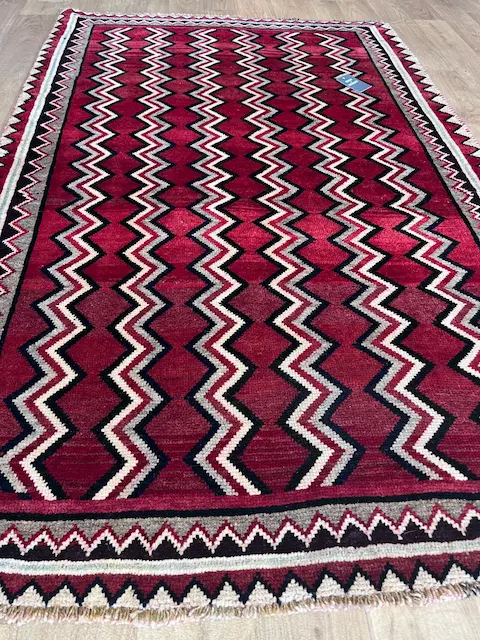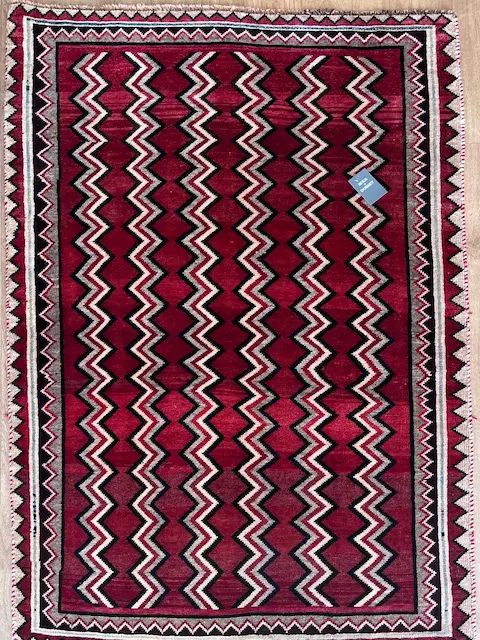 The Luri and Qashqa’i nomads who migrate over vast territories in Southern and Western Iran have long been famous for their carpets, made from the wool of their own sheep which they have carded and spun themselves. They are woven by the women of the tribes, on primitive portable looms which are stretched out on the ground. Apart from the fine more formal carpets for which the tribes are famous, they also weave another type of rug which are much more creative in design. These are the Gabbehs. Nowadays, to distinguish them from the new production of gabbehs woven in villages around Shiraz (and which are also excellent rugs) we tend to call the proper tent-woven pieces Old Gabbehs or Traditional Gabbehs