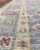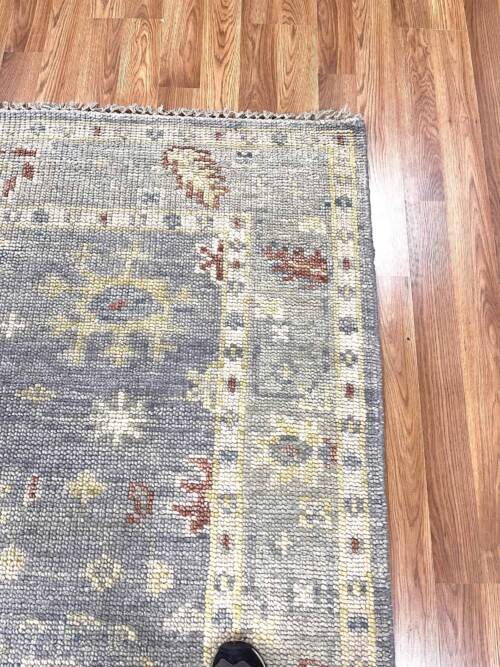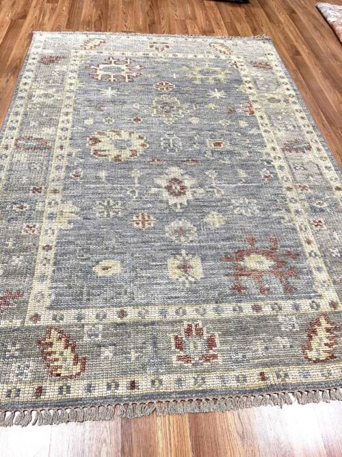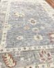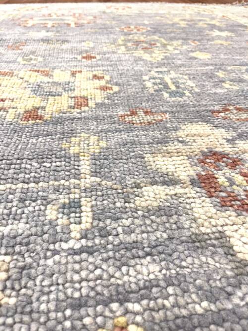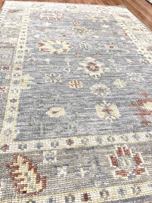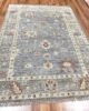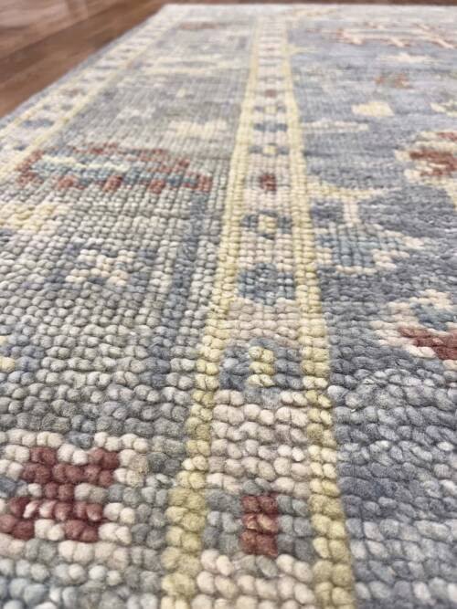 Beautiful soft blues and greens used in this hand-woven Indian rug. Using lovely soft wool and all over design